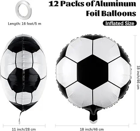 Attractive Double-Sided Soccer Design – Each soccer balloon boasts a vibrant, double-sided soccer print, adding an authentic and engaging touch to your soccer birthday party decor. This eye-catching design making the soccer banquet decorations an ideal choice for soccer enthusiasts who wish to create a truly immersive experience for their guests. Used as part of a larger decorative scheme, these soccer ballons are sure to score points for their aesthetic appeal.