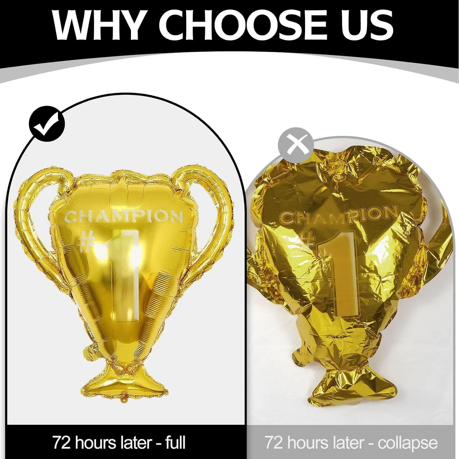 • Premium Foil Material & Championship Design Crafted from heavyweight leak-proof Mylar, these trophy balloons and 4D soccer balls feature dazzling golden accents like the iconic balon d’or trophy. Reusable for multiple events – just deflate and store! Ideal for soccer birthday or club world cup trophy celebrations