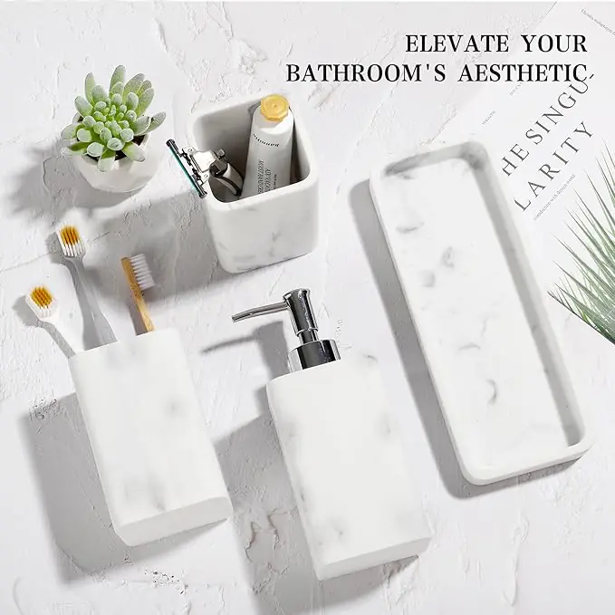 Marble Look Style: This bathroom accessory set features a marble-look design that complements a range of styles, adding a touch of elegance to your space.