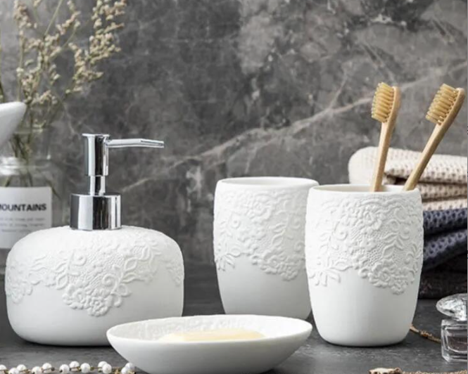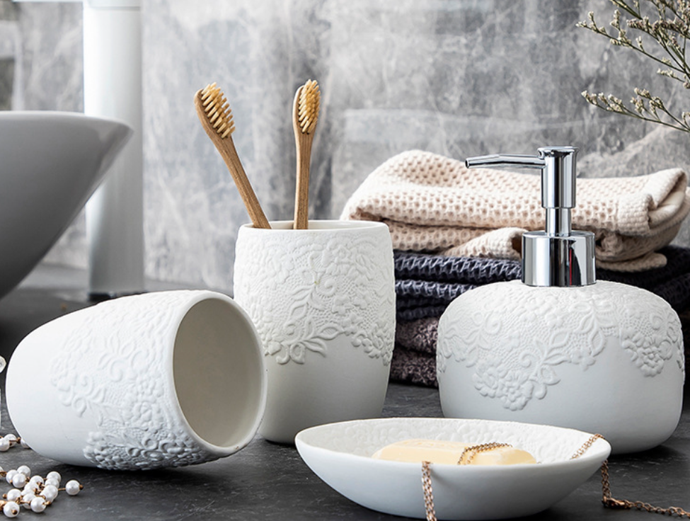 4pcs Ceramic Embossed Pattern Bathroom Set Wholesale