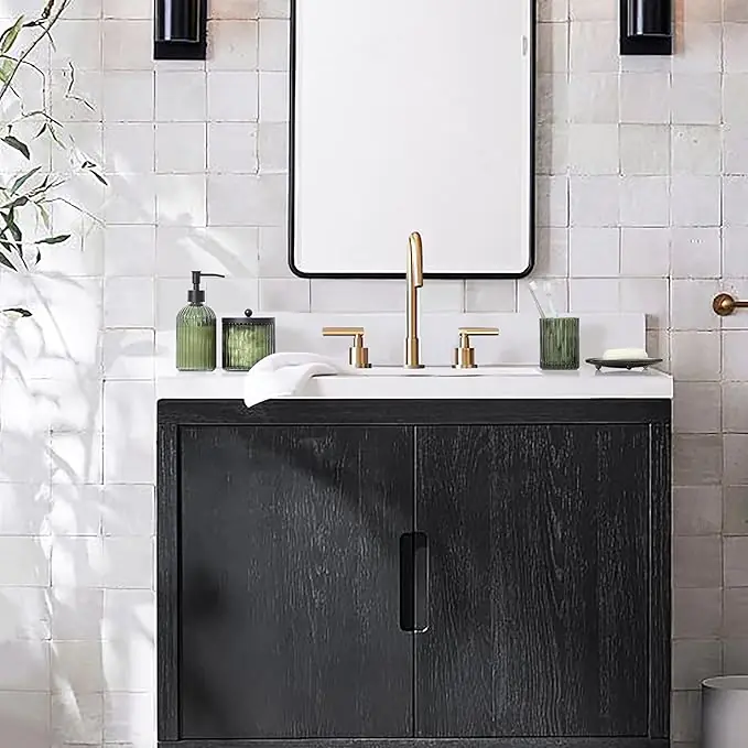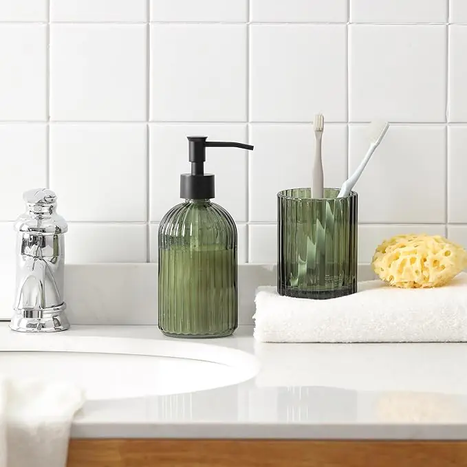 Stylish Design: Features a decorative pressed pattern in elegant olive green, adding sophistication to any bathroom decor.