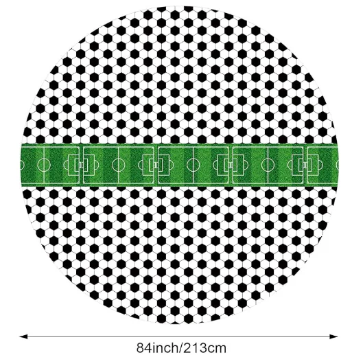 Material: PET plastic Main color: multicolor Size: approx. 84 inches in diameter Package includes: 6 x Soccer party tablecloths Notes: Manual measurement, please allow slight errors on size. The color may exist a slight difference due to different screen displays.