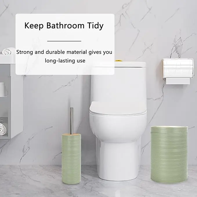 Product description Elegant Design , Set Includes: 1 Soap Dispenser, 1 Toothbrush Holder, 1 Toothbrush Cup, 1 Soap Dish, 1 Toilet Brush Holder,1 Trash Can