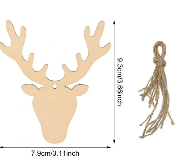 Add rustic charm to your holiday decorations with our wooden reindeer Christmas ornament, a blank canvas for creativity and festive cheer. Measuring 9.3×7.9cm, this adorable wooden piece is perfect for DIY projects, kids’ activities, and Christmas tree decorations.