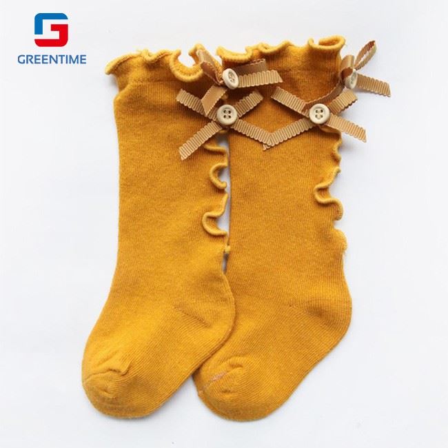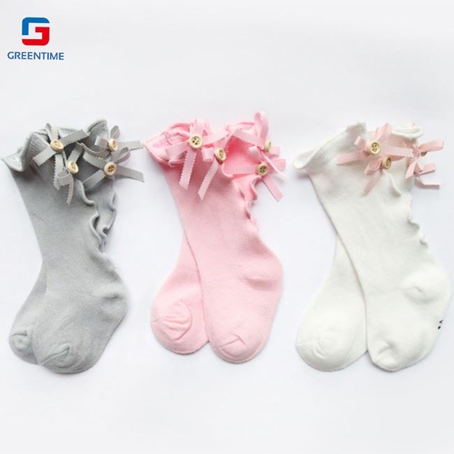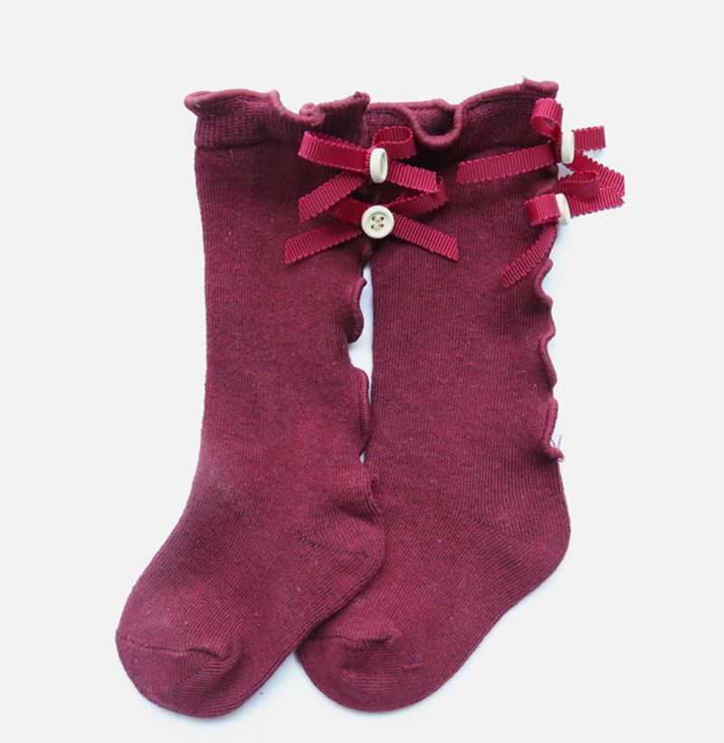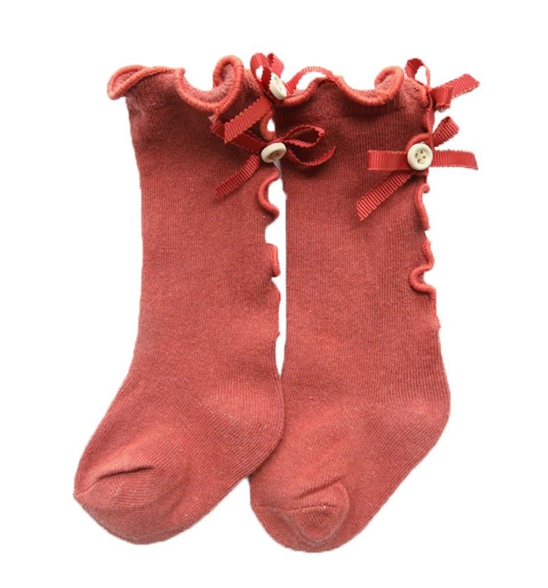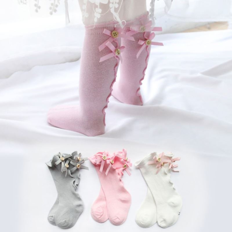 These children’s lace socks With Bow Lace Button are perfect for boots! Delicate pointelle lace trim peaks out of tall boots with an added button accent. Knit with soft cotton for optimal comfort and durability. Wear pulled up to the knee or slouched for shorter boots. Dress up any outfit for school, play, and everyday.