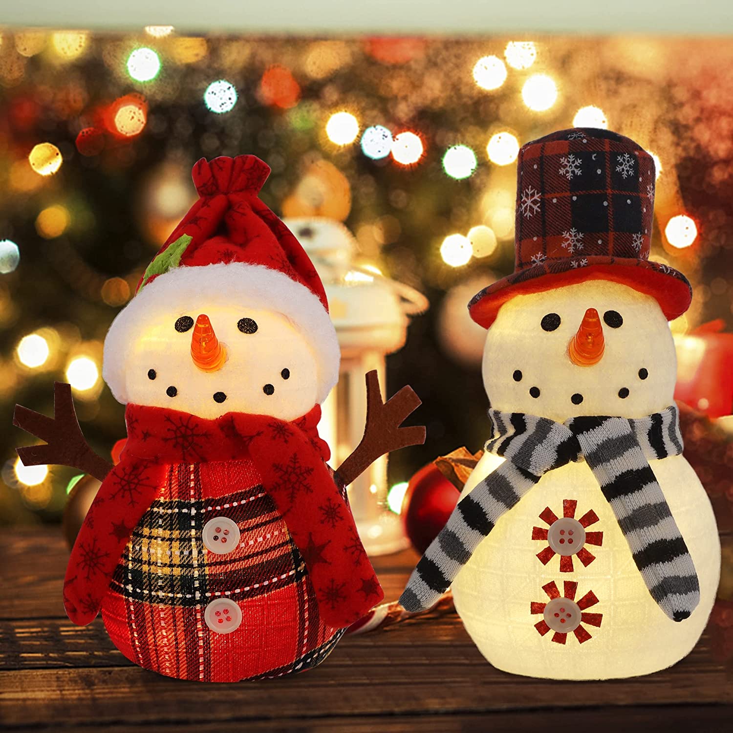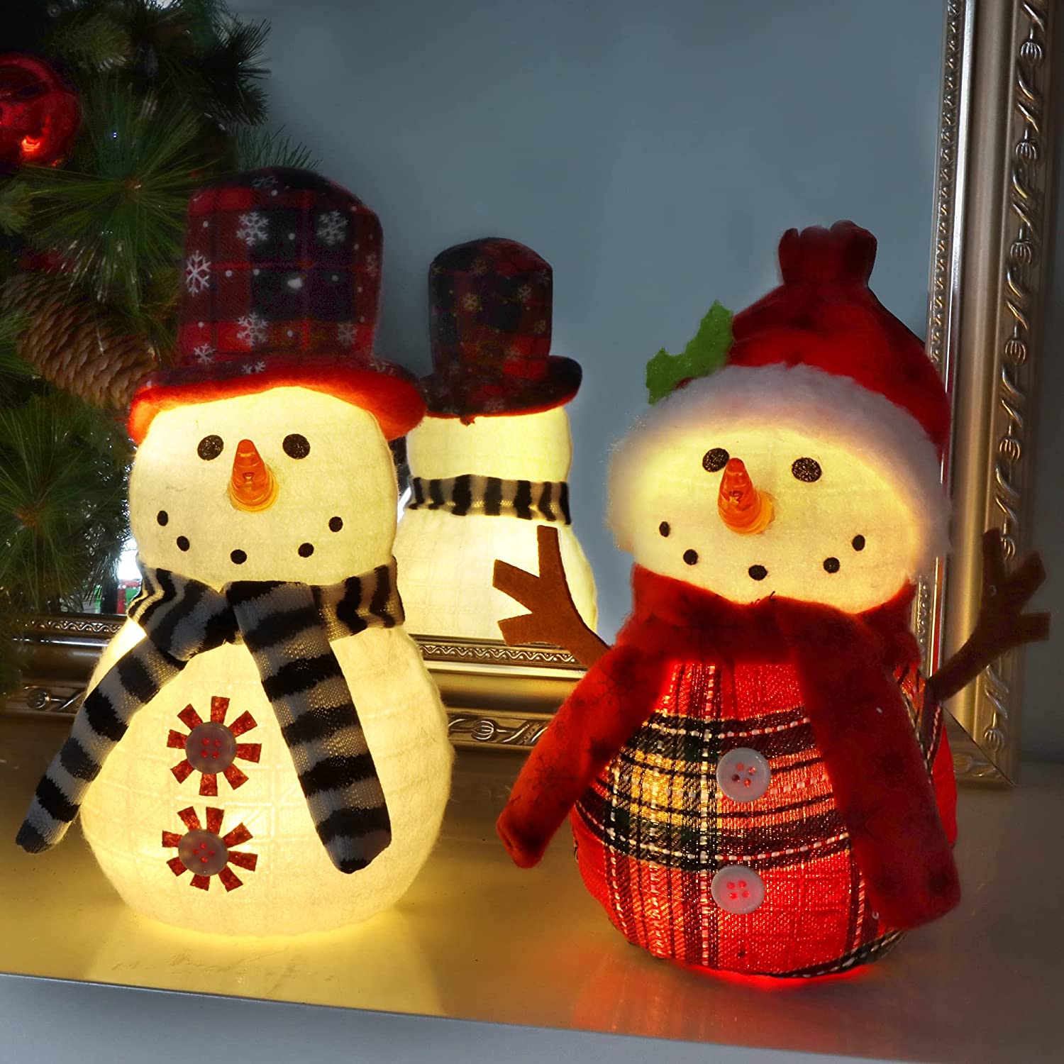 Excellent Quality: The light up Snowman Christmas Decoration are made of sturdy acrylic frame inside and covered with premium cloth, can freely stand on the table. Durable and long-lasting, can be used for years.