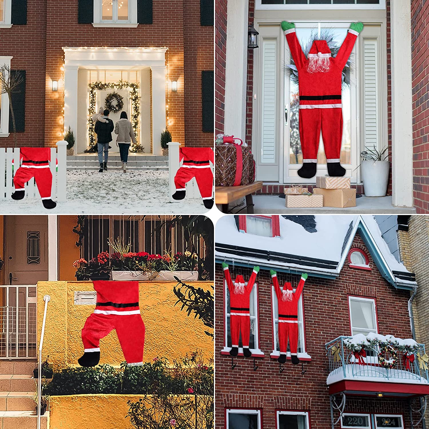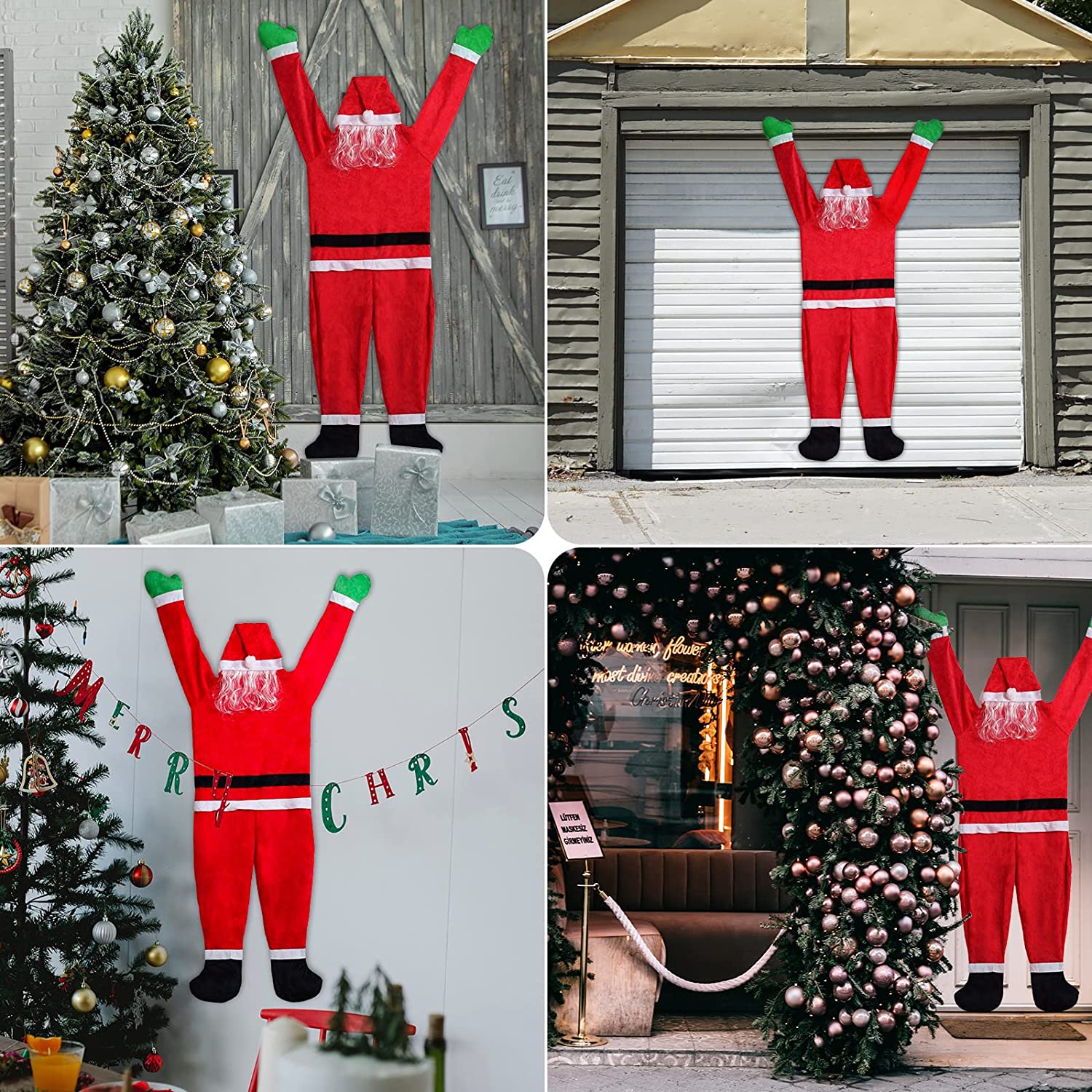 FUNNY SANTA CLAUS DECOR:This Christmas Hanging Santa Suit Decoration can be glued to roofs, porches, balcony, windows, eaves, front doors, fireplaces, stairwells, walls, cars, christmas furniture and even christmas trees, etc, which will definitely surprise your family and friends during christmas season.