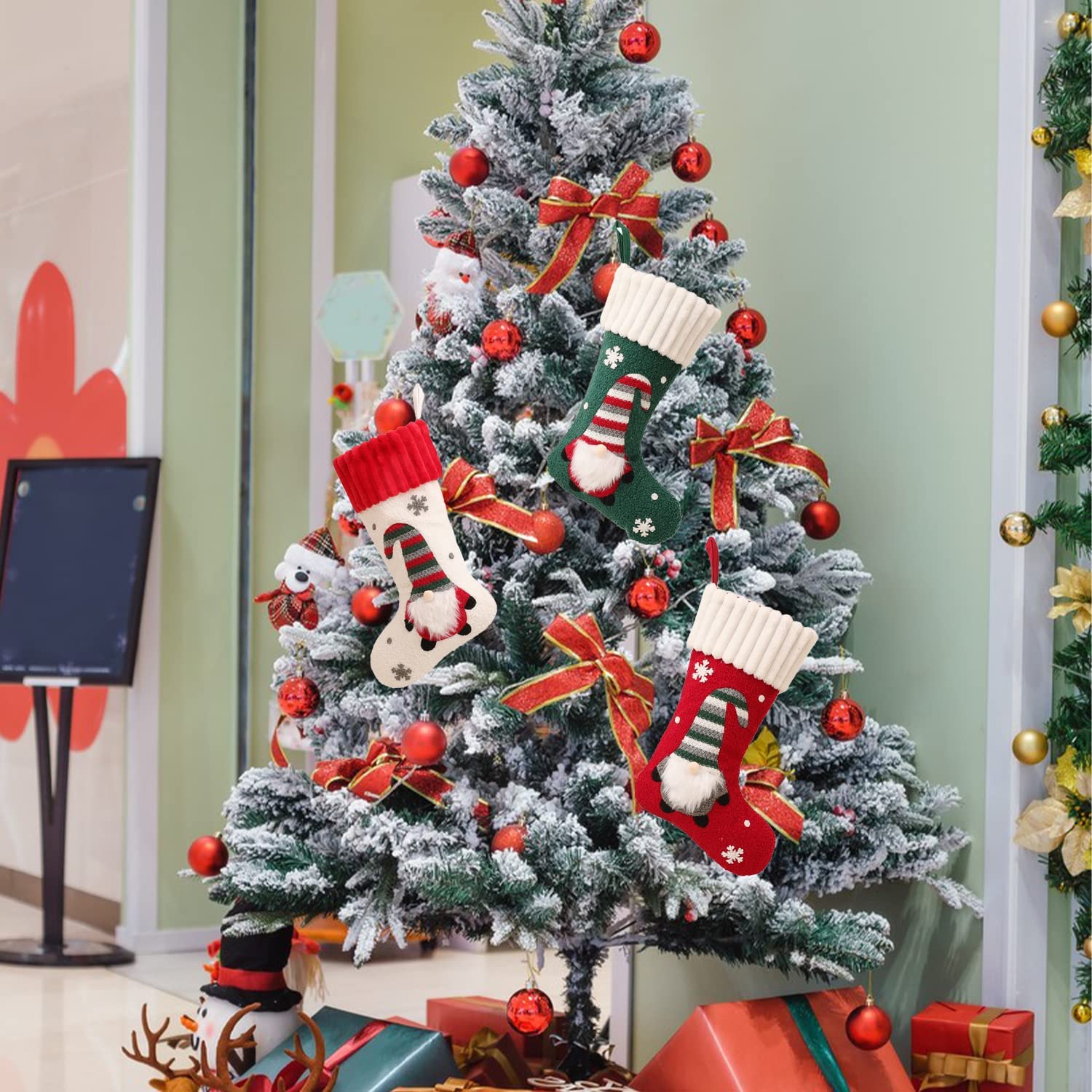 Exquisite Craftship Christmas Stockings Decorations: Exquisite embroidered designed, totally handmade stitching edge christmas stockings. Classic 3D gnomes pattern giving a christmas temperament for home decor. And the embroidered patterns make the images more three-dimensional and vivid.