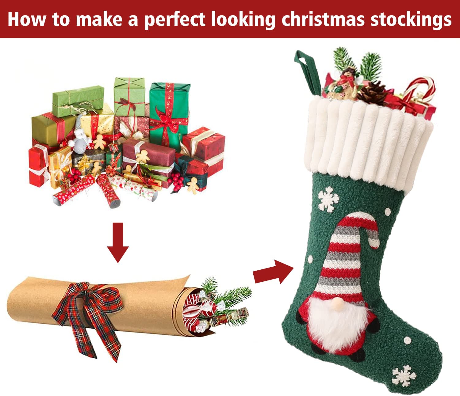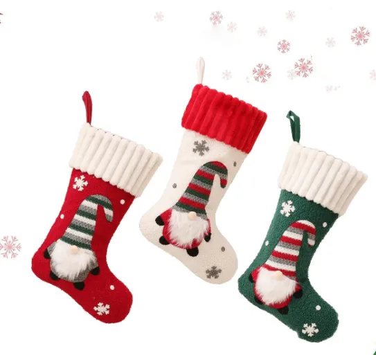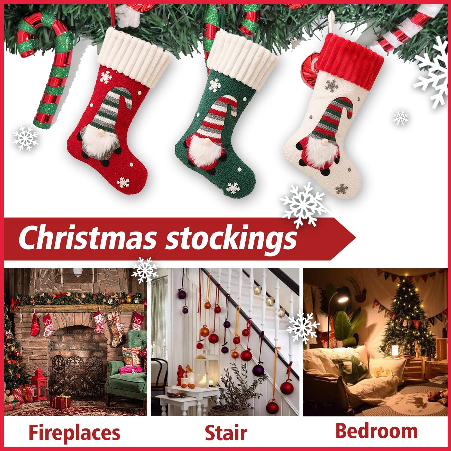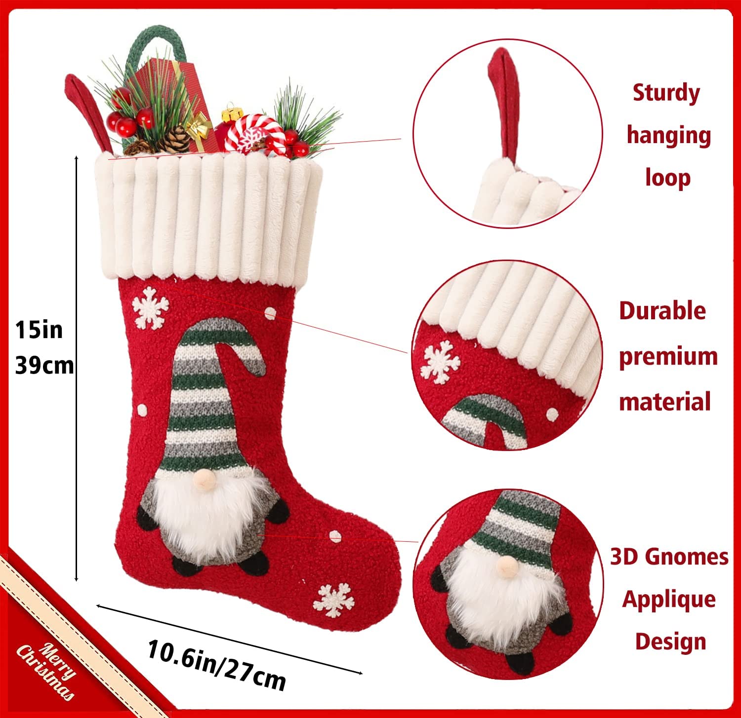 Exquisite Craftship Christmas Stockings Decorations: Exquisite embroidered designed, totally handmade stitching edge christmas stockings. Classic 3D gnomes pattern giving a christmas temperament for home decor. And the embroidered patterns make the images more three-dimensional and vivid.