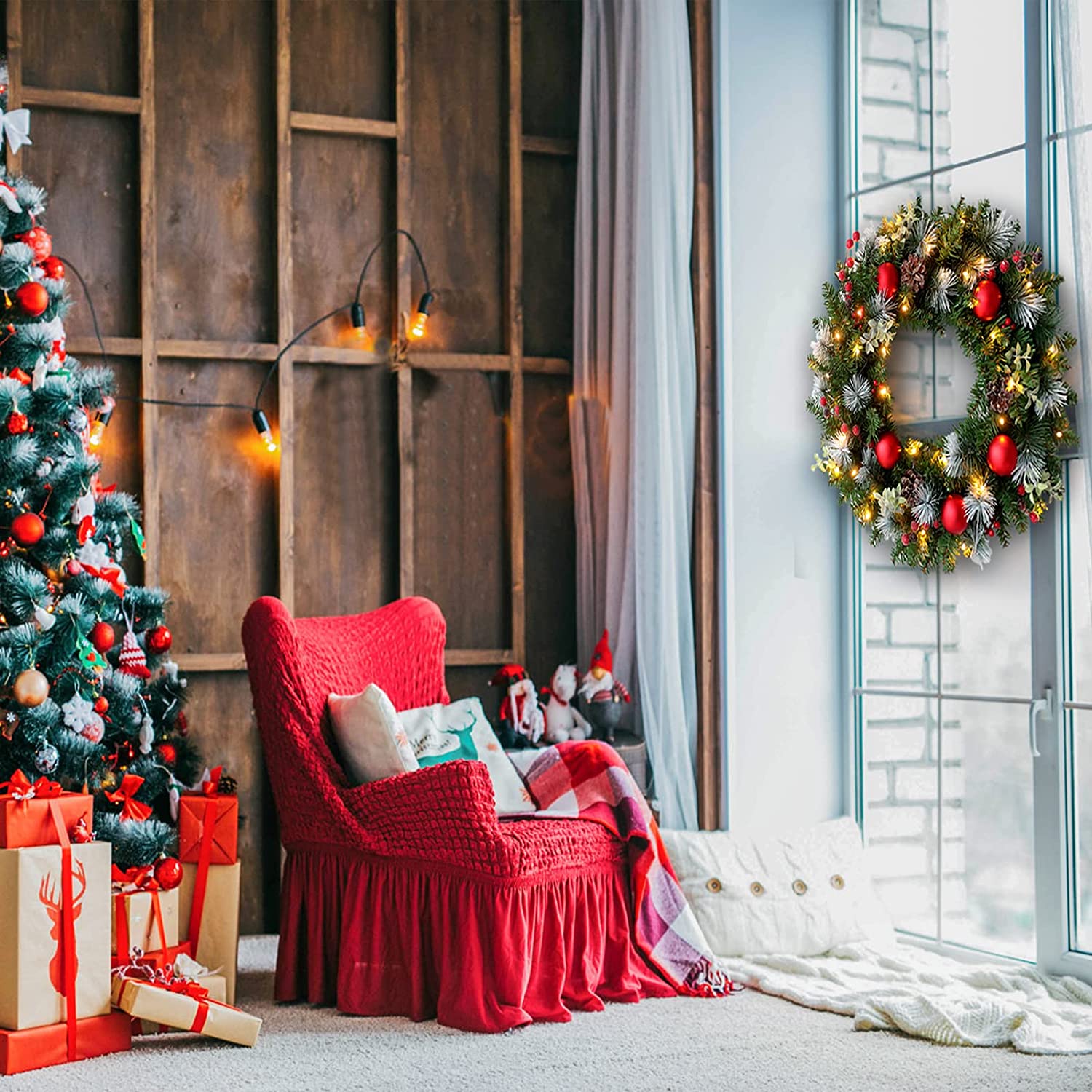 PERFECT SIZE FOR EVERY SCENE: This 20inch wreath Christmas decoration. More suitable for interior decoration or apartment, suitable as indoor or outdoor Christmas wreath. This wreath decoration can be hanged on any door, window or entrance to add a festive touch.