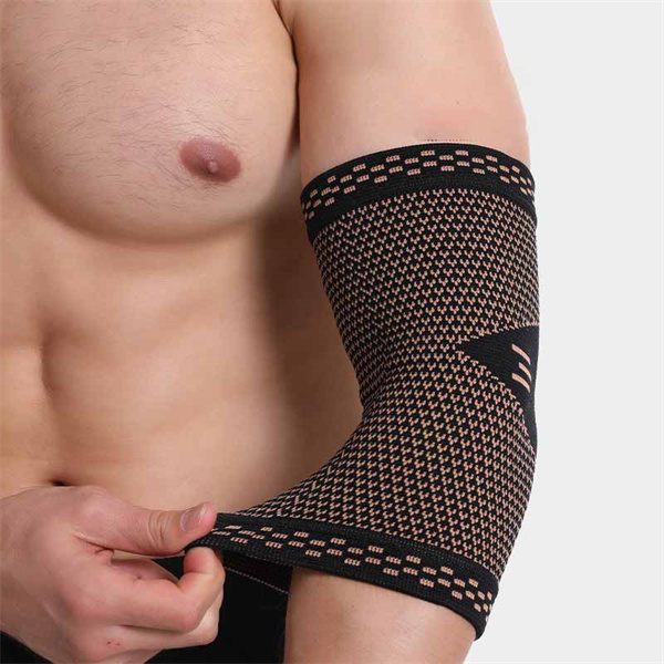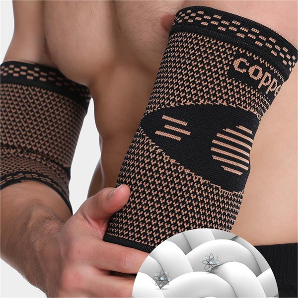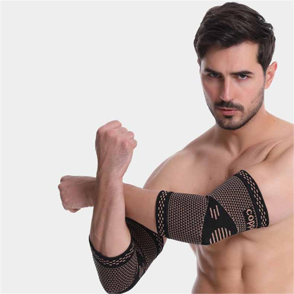 The elastic weaving of nylon and spandex provides sufficient stretch and adaptability, suitable for elbows of various sizes, while also effectively preventing elbow sprains and strains. The latex material provides additional protection against scratches or other injuries to the elbow. In addition, the use of copper containing protective technology can also increase the content of copper ions, helping to reduce muscle damage and improve athletic performance.