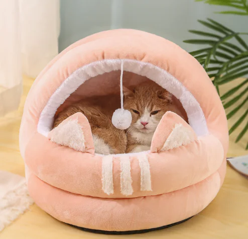 “My anxious rescue cat finally sleeps soundly in this semi-enclosed pet bed—the plush hideaway gives her security while the high-loft PP cotton keeps her perfectly warm. The pom-poms provide just enough play to relax her!” – Jessica T., Cat Behavior Consultant