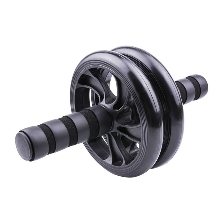 2. Push the double wheel roller forward and lower your body only as far as you can, and keep your back straight.