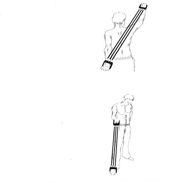 2. Method two: Stand up and two legs are apart. Put hands with chest expander behind back, pull open gently, stretch behind arms and relax slowly, repeating several times.