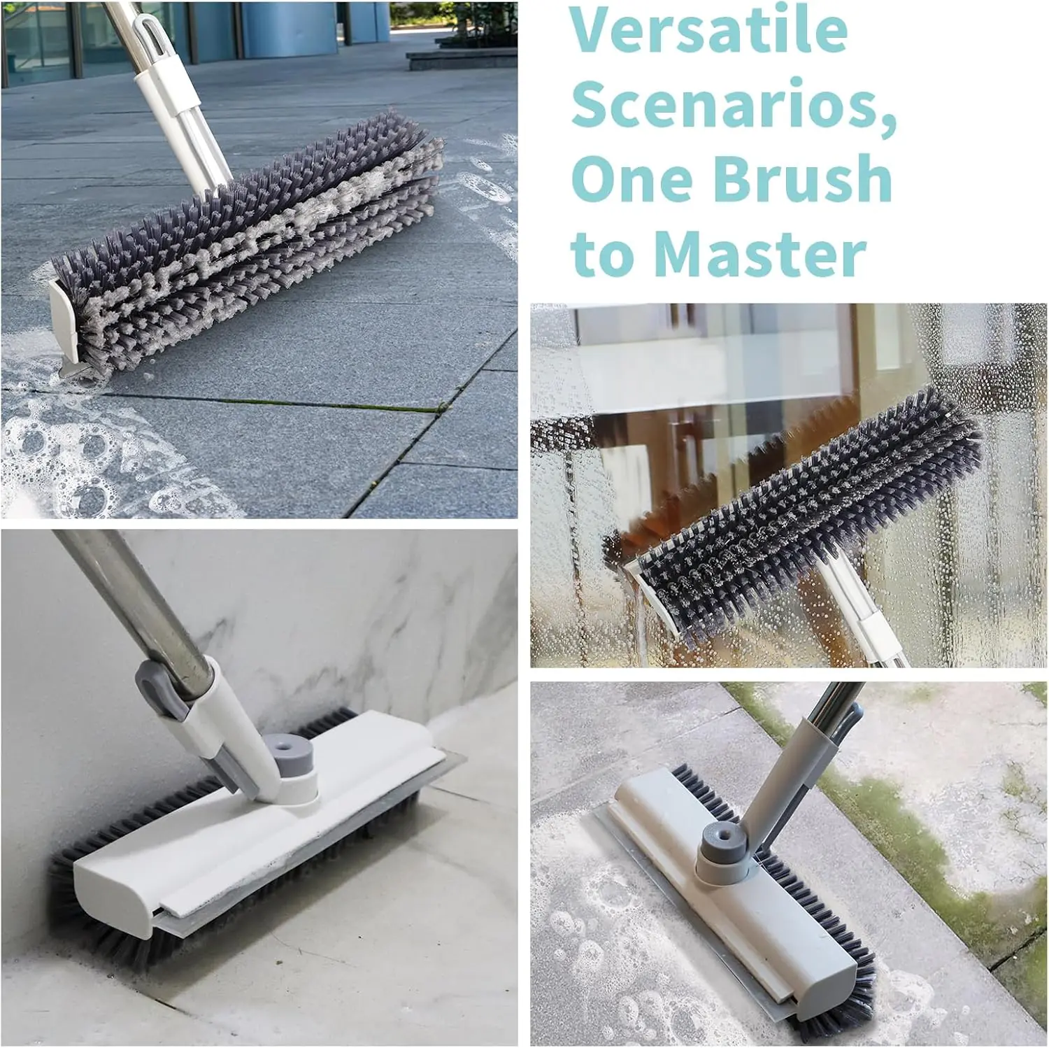 The floor brush features a bottom made of stiff bristles, making it suitable for various sealed floors, tiles, and marble surfaces. It can be used in a wide range of settings, including bathtubs, bathrooms, kitchens, living rooms, walls, garages, patios, and even swimming pools.