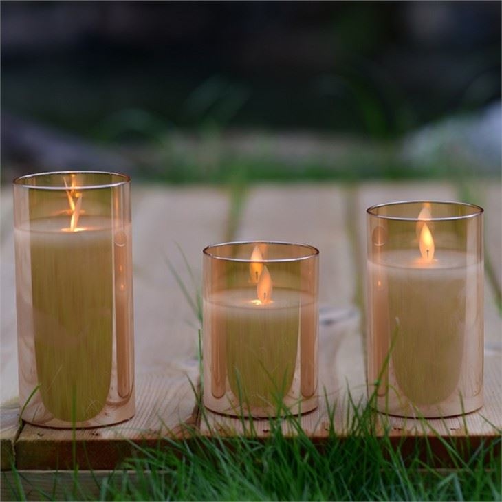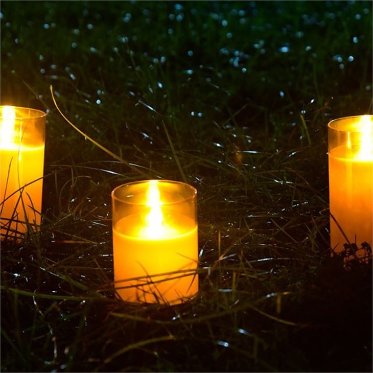 *Remote control and timer function-you can control 3 glass LED candles via the remote control (on/off, light/dark, 4/8 hour timer function), the remote control range is 16 feet (maximum)