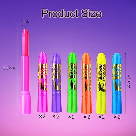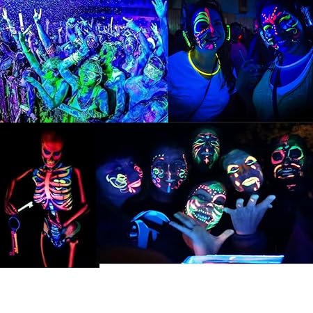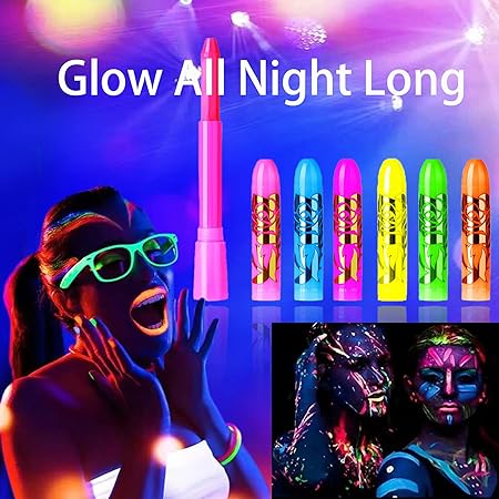 WIDE APPLICATION: This Glow-in-the-Dark Face Painting is amazing. The highlighter crayons glow in the dark, perfect for black light birthday parties, carnivals, Halloween, costume parties, clubs, festivals, and anywhere with UV lighting.