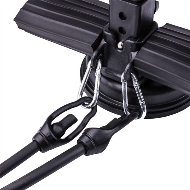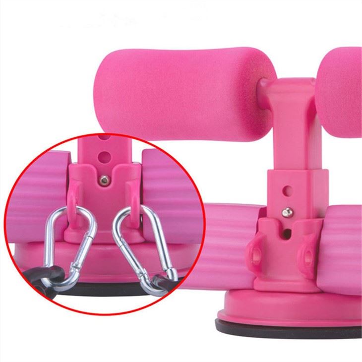Clean the floor with wet rag to make the floor a little wet. Put the sit up bar on the floor. press the black buckle down. If the height need to be adjusted, press the side spring button to change it.