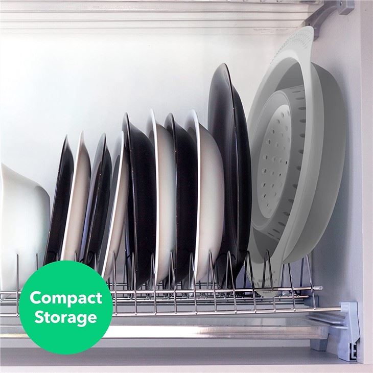FOLDABLE AND SPACE-SAVING: Colanders can be folded to less than 2 inches and stored anywhere, even in a drawer, making the kitchen more concise, it is also an ideal choice for picnics and outdoor activities.