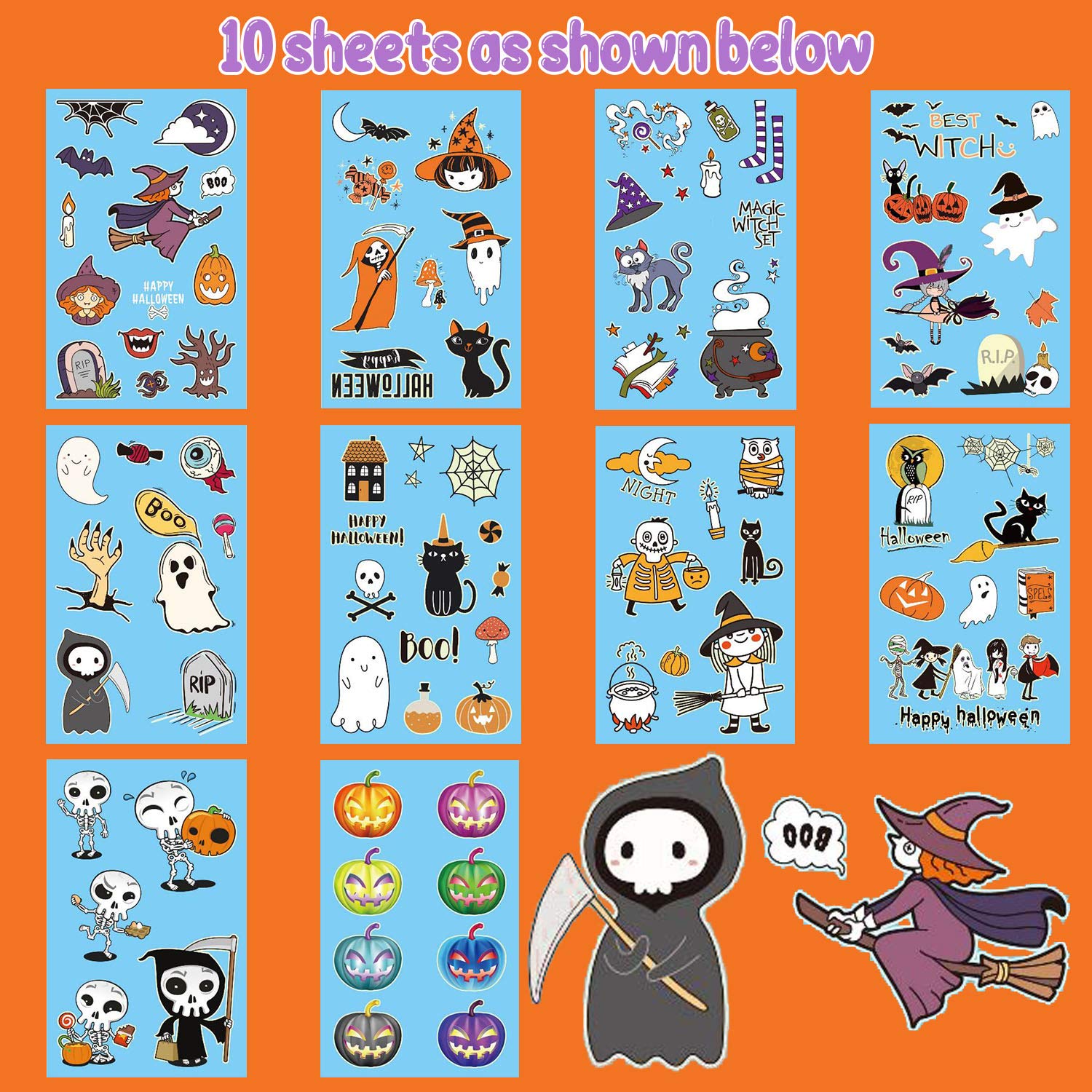 Partywind 10 Sheets Luminous Halloween Temporary Tattoos for Kids, Glow Halloween Decorations Birthday Party Favors Supplies, Halloween Fake Tattoos Goodie Bag Fillers Games Accessories for Party