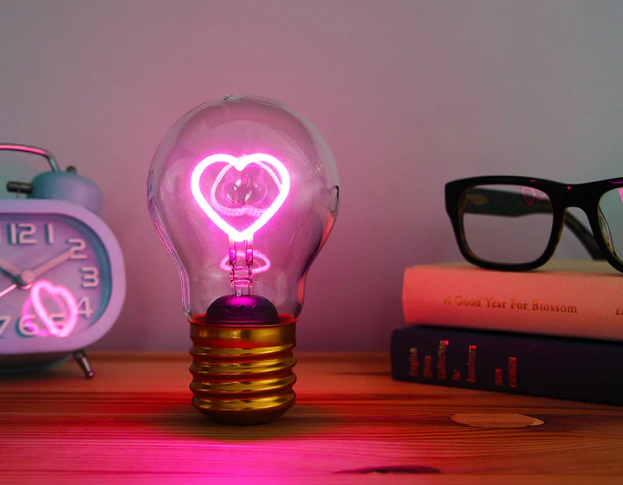 It is cordless, rechargeable and beautiful and recreates the classic look of old-school filament lamps with a warm pink heart.