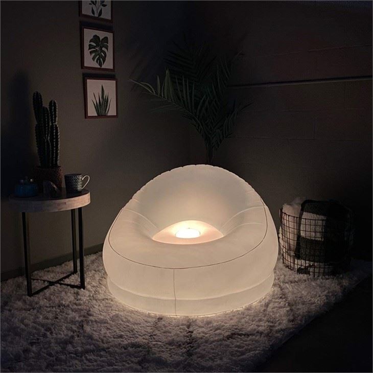 The weight of inflatable flashing sofa is less than 3 lbs, you can take it anywhere. This LED lighting chair is the perfect chair to light up a room, outdoor area or party. Perfect for backyard parties, camping, dorm rooms or anywhere in your home. You can control the comfort level by adjusting the air pressure to the perfect level. You’ll feel like you’re floating in the air because it’s like a beanbag, but without the weight.