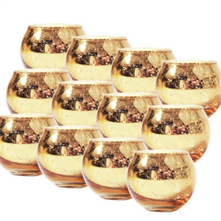 LAMORGIFT Golden Wishing Candle Holder 12 Piece Set-Mercury Glass Candle Holder-Candle Holder Suitable for Home Decoration and Wedding / Party Table Center Decoration