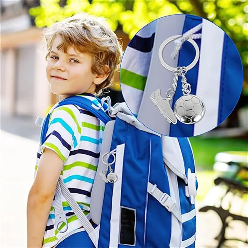 This Metal Football Backpacks Charm Keychain is designed for wholesale buyers targeting the sports accessories and promotional products market. It serves as a stylish and functional decoration for backpacks, keychains, and personal items, appealing to football enthusiasts and fans. As a versatile Metal Football Backpacks Charm Keychain wholesale product, it is ideal for businesses looking to stock durable, themed accessories that enhance brand visibility and customer engagement in retail or corporate settings.