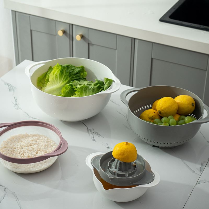 [Multifunction]A basin of multi-purpose kitchen wash fruit wash vegetables quickly drain stainless steel pots can be used for soups microwave heating