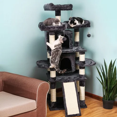 Using this multi-level cat tree is simple and intuitive. Here are a few tips to maximize your cat’s enjoyment: