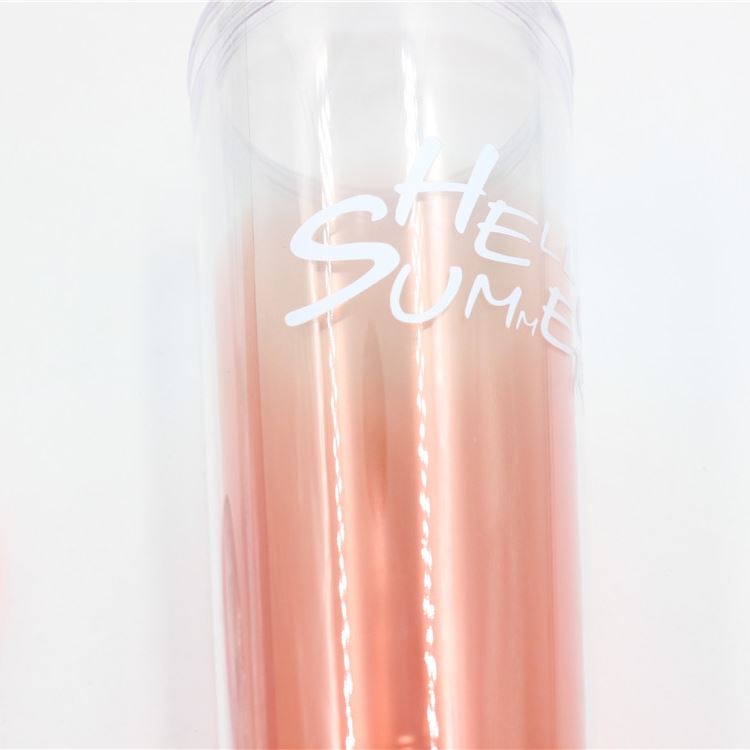 This bottle is easy to carry and has a special color that fades from bottom to top.mouth has a spiral pattern, and the cup lid has a silicone ring, which has strong sealing