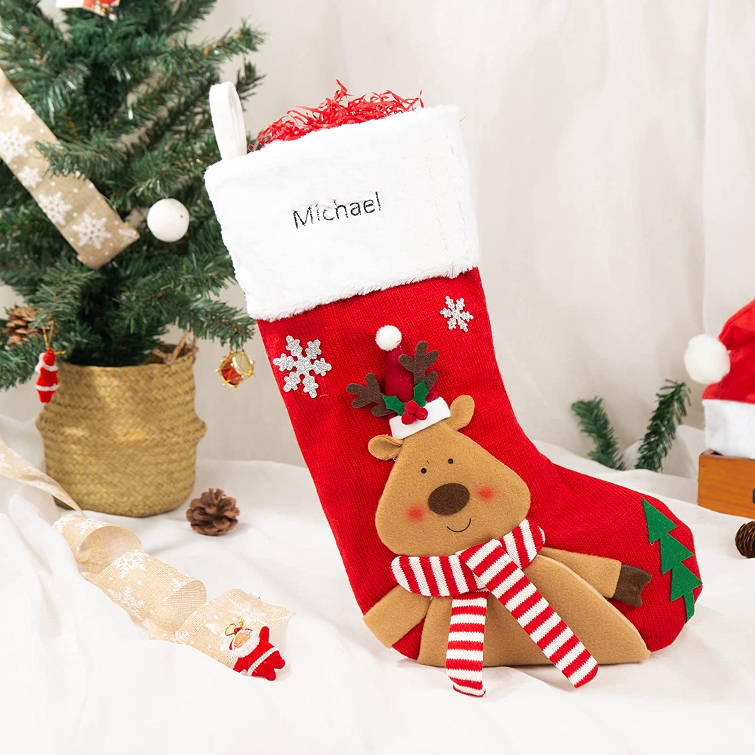 Materials: The Christmas stockings are made of high quality fiber cloth and super soft plush for soft and comfortable touch, easy to clean, suitable for a variety of Christmas themes.
