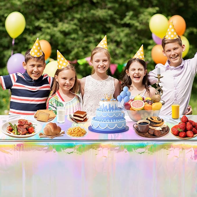 PREMIUM QUALITY: These Plastic Tablecloths with Laser are made of high quality PE plastic material, lightweight and portable, waterproof and reliable, not easy to break or tear, no odor, reusable, keep your table away from stains caused by food, drinks, etc., a good choice for your birthday party, baby shower party, disco party.