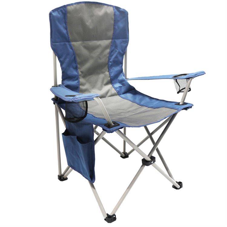 A folding chair designed for camping, it comes with a carry bag for storage. Made from polyester, the fabric is thick and durable in the outdoors. It has a wide stand to support up to 120 kg, comes with armrests and has cup holders and pockets on both sides. It has breathable fabric and foam padding for added comfort.