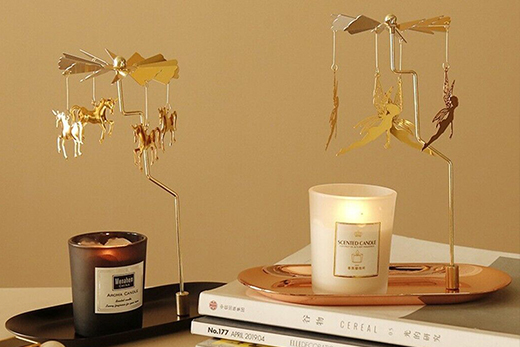 Similarly, the rotating candlestick also uses this principle of hot air. When the candle is lit on the candlestick, the hot air rises and promotes the rotation of the leaf surface, thus forming this magical phenomenon.