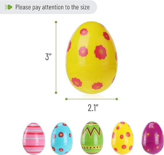 Great for kids: surprise your kids, nieces and nephews with treats inside the eggs. Ideal for kids 3 years old and up and the perfect empty plastic Easter eggs refillable with candy, treats, toy basket gifts.