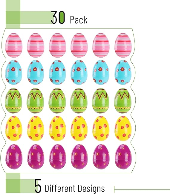 30PC Easter Plastic Eggs, 3 Inch Tall, Printed Easter Plastic Eggs Customized