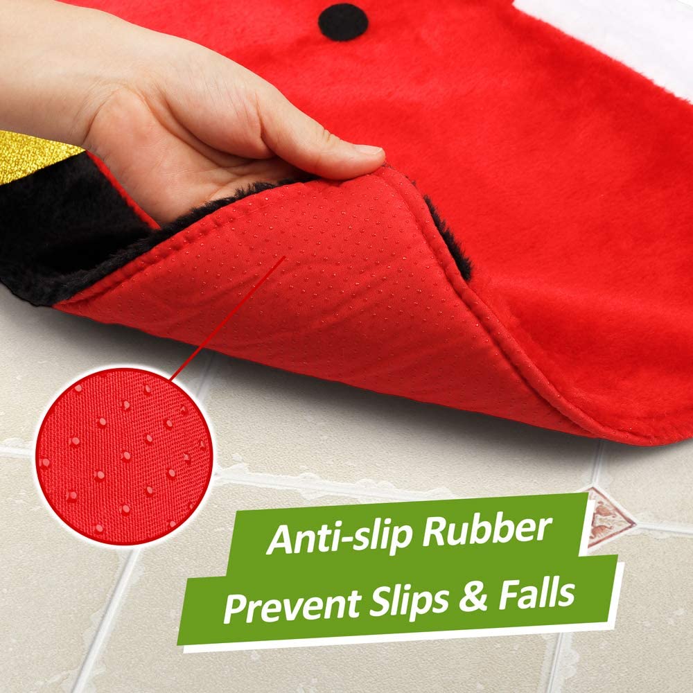 Impressive Design: Adorable to decorate your bathroom for Christmas holidays. The Santa Toilet Seat Cover and tank cover features an elastic snug fit. The Santa suit mat comes with skid resistant backing