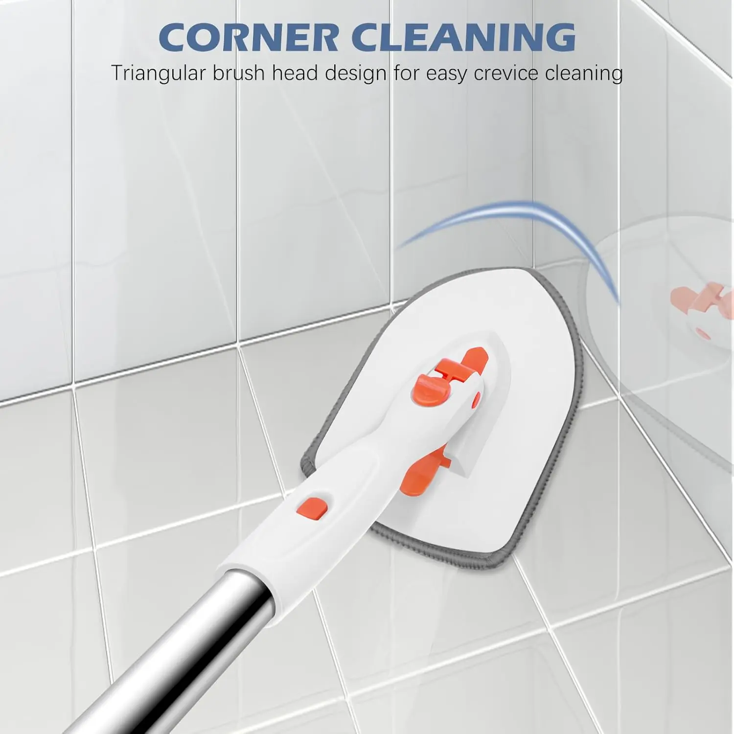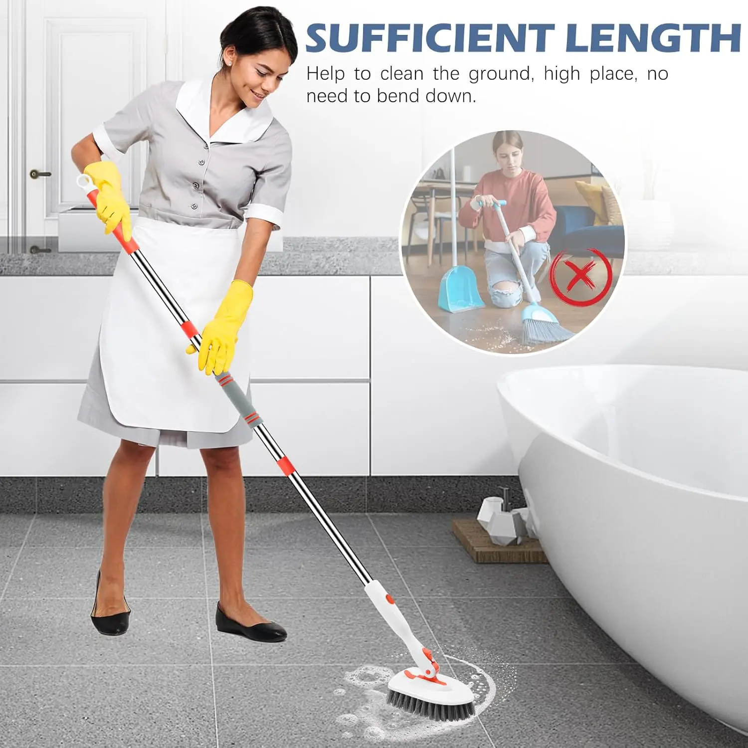 3-In-1 Tile Tub Floor Scrubber with 52-inch Adjustable Long Handle Shower Cleaner Brush and 3 Detachable Replacement Brush Heads for Cleaning Bathroom Kitchen Walls Tub Tile