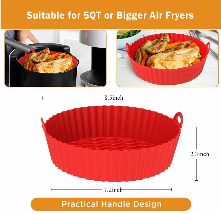 G3Kitchenware 2-Pack Silicone Air Fryer Liner Basket, 8.5 Inches Reusable Non-Stick Air Fryer Silicone Basket Easy to Clean No Odor Heat Resistant Alternative Parchment Liner Paper Air Fryer Silicone Pan Round Applicable Oven Accessories for 3 to 5 Quart Air Fryers (Pink and Red)
