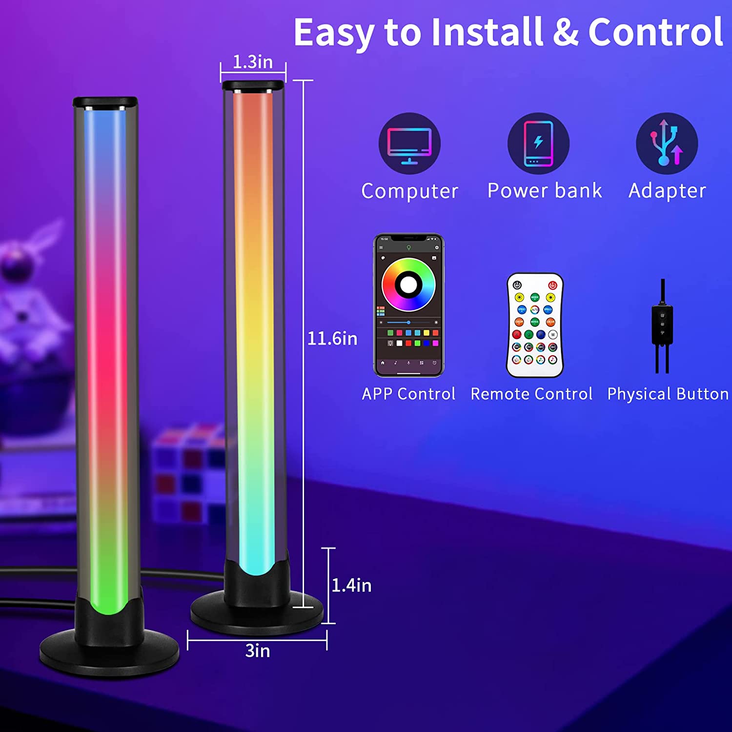 New Upgrade Design: Our PIMBTPE 2 Pack Smart Light Bars of pipe is made of polycarbonate, feature high transparency and light transmittance of 92%. Vivid colors, no glaring. The base built-in charging port for the light bar stands more stable, looking more beautiful after inserting the wire.It’s a great home decoration.