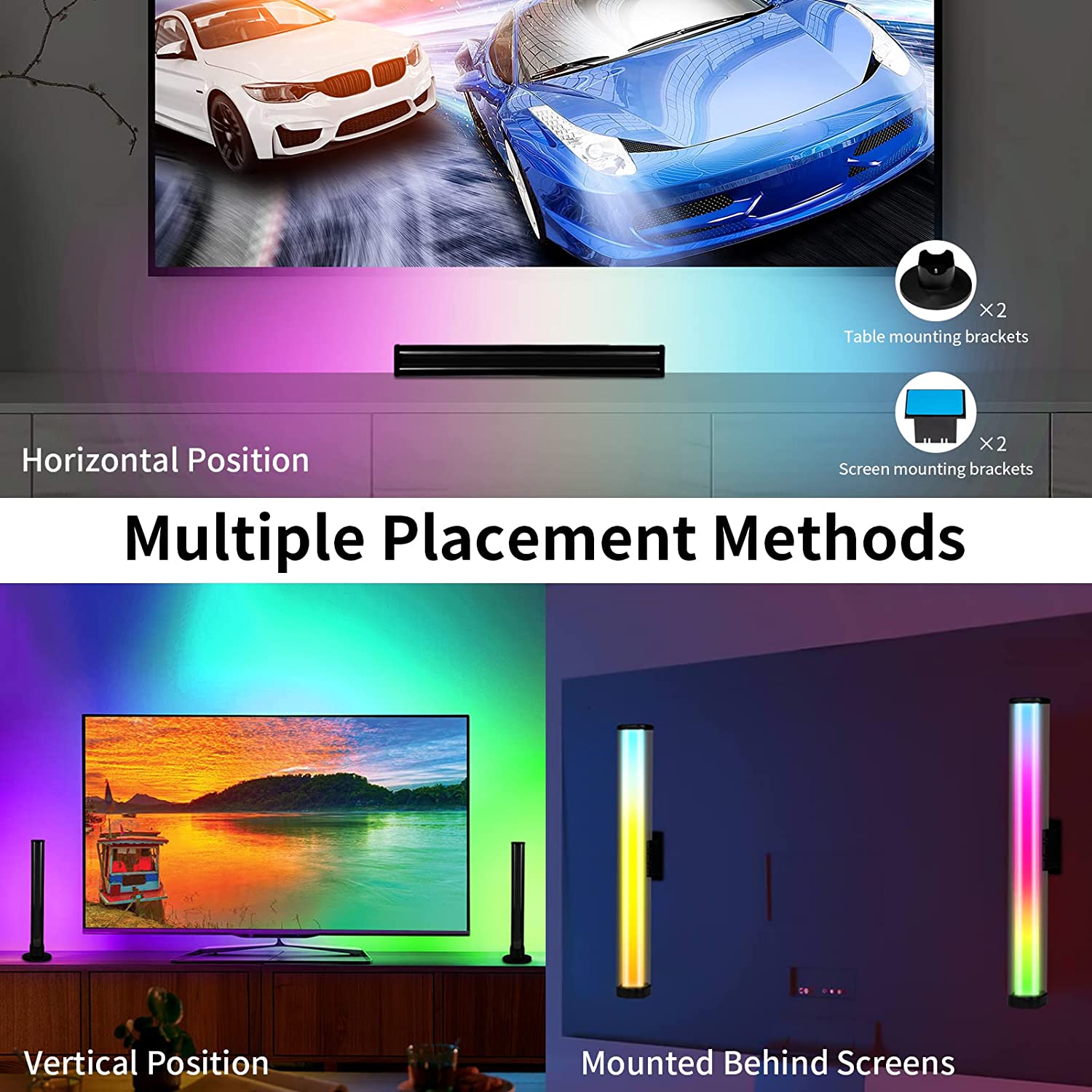 Multiple Placement Methods: Attach the Smart Light Bars to the back of your TV or computer with strong adhesive. Or, use the table mounting brackets provided for an easy set-up next to or in front of the screen. These LED lights are quick to install. Perfect for any living space, restaurant, hotel, or even bar.