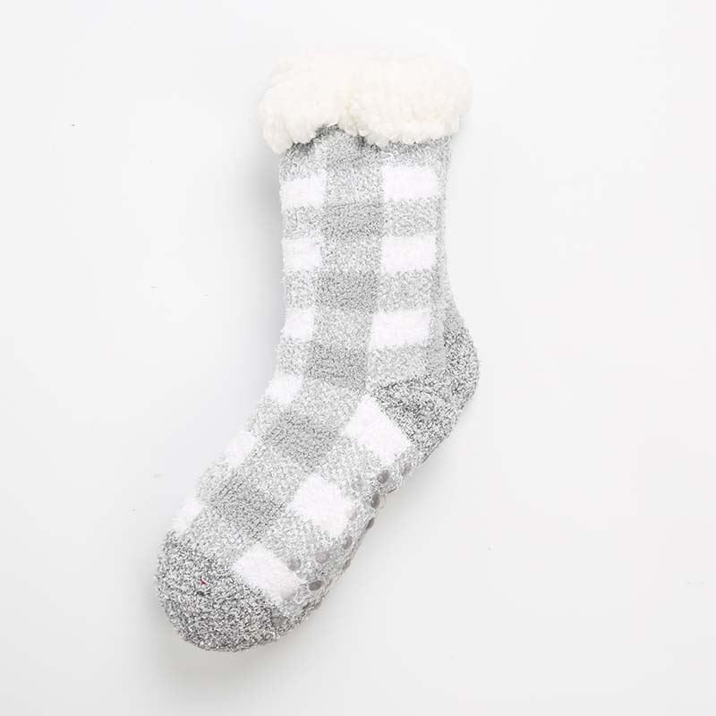 These special yarn floor socks feature a thick knit for comfort and extra warmth! Silicone grips on the bottom of the sock prevent slipping on smooth floors. You can wear them as home socks, padded socks in any cold weather.