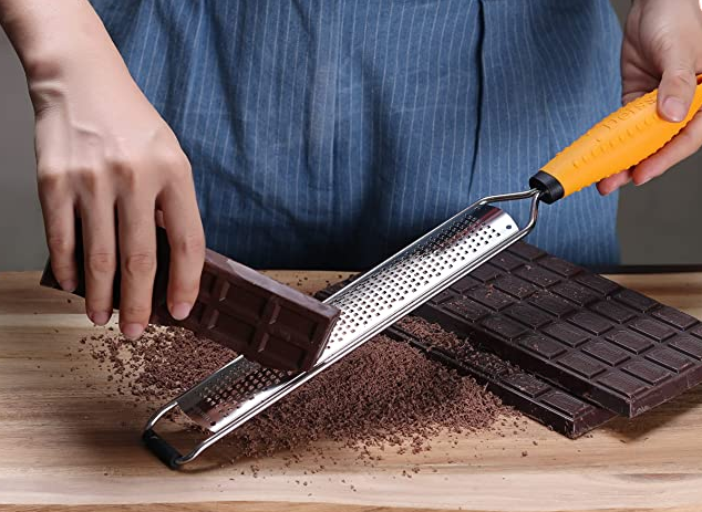 • Zesting & Grating Have Never Been So Simple ✔ Shear the hardest cheese into grated fluff or get nicely shredded carrots using almost no pressure. Simply zip the zest grater cutter-knife across the rinds of oranges, lemons, and limes. In seconds, you can have finely grated garlic or ginger or treat yourself to a favorite dessert topped with fluffy chocolate flakes.