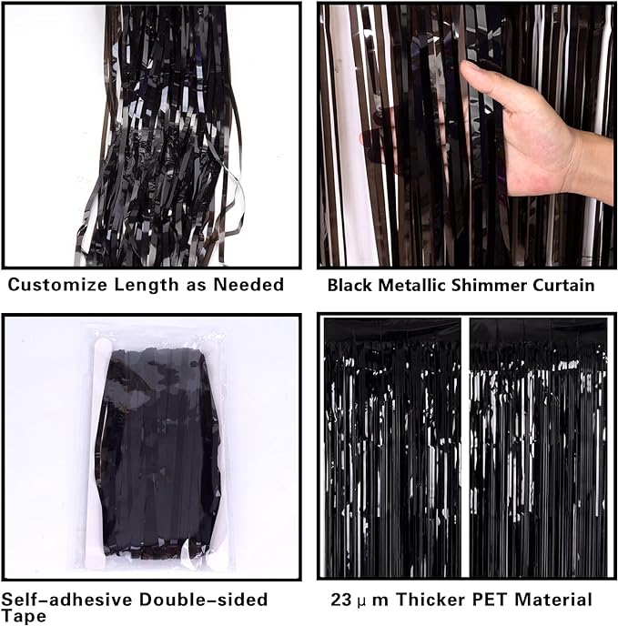 PREMIUM QUALITY MATERIAL: This Tinsel Tassel Curtain is made of 2.3 μ PET film material, it is lightweight and durable shiny metal fringe curtain. It can be used for photo backdrops, discos, door decorations, stage backdrops.
