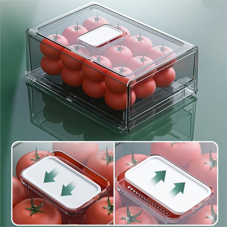 Our Transparent Refrigerator Container Storage Box can be used as a filter to clean agricultural products or to filter foods such as potatoes. The filter tray at the bottom is used to increase the moisture in the food, so it can be used as a storage room after cleaning without changing the container. Filter the moisture on the surface of vegetables and fruits to reduce food spoilage.