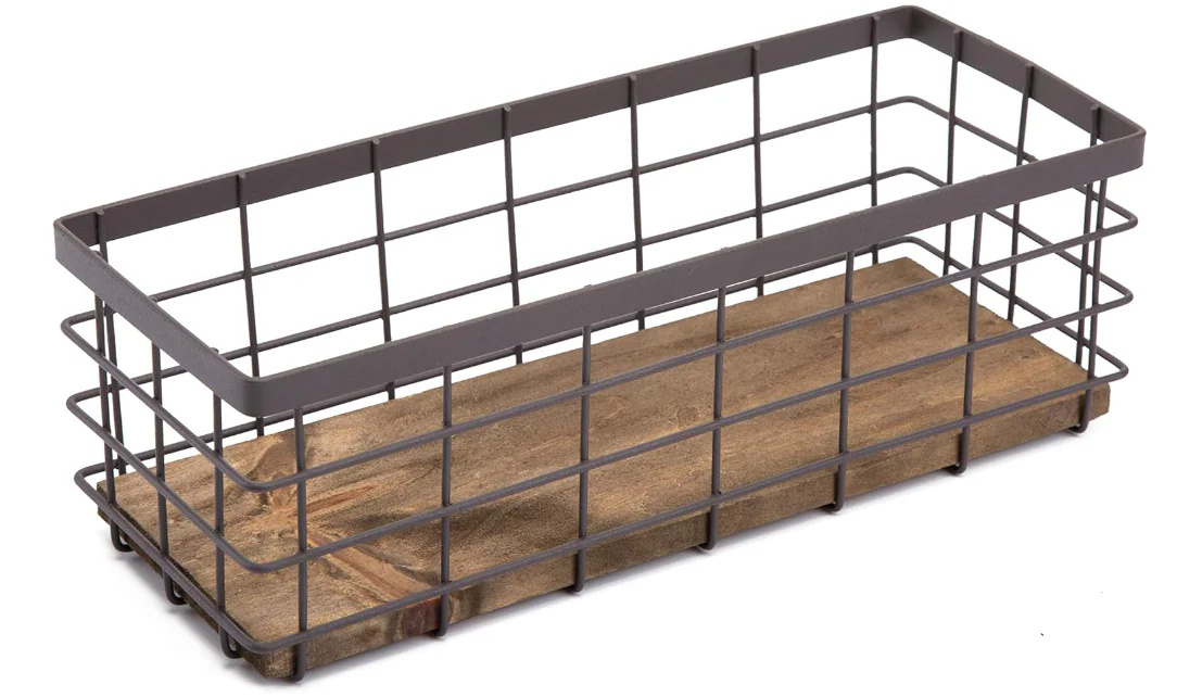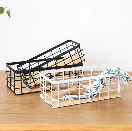 SIMPLE STYLE: This wire storage basket is combined of iron art and solid wood, simple iron mesh hollow design, straight lines, simple atmosphere, and very tolerant for any style and space scene.